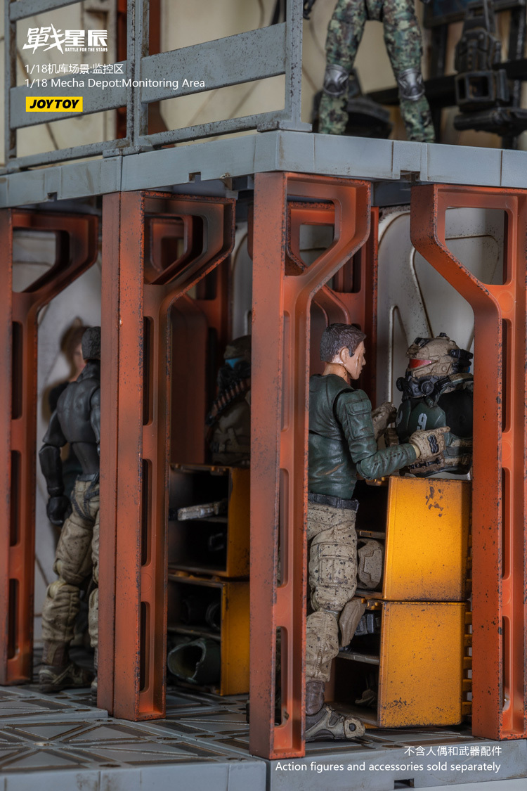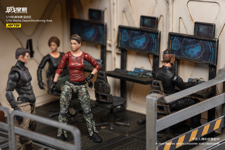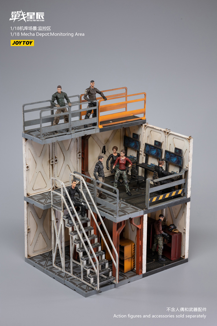 JoyToy brings much more extremely detailed 1/18 scale dioramas to life with this mecha depot Monitoring space diorama! This set consists of flooring,operation room , railings, and a staircase.