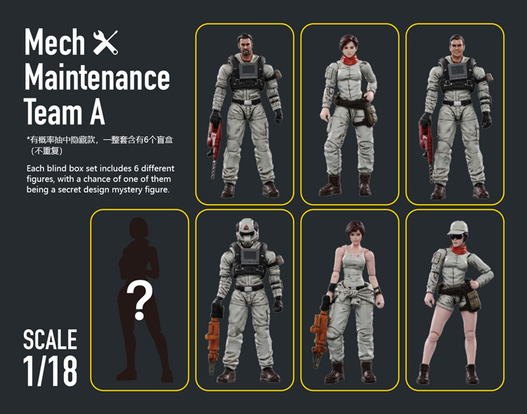 JoyToy Figure Store's Battle for the Stars figure series continues with the Mech Maintenance Team A figures! Each 1/18 scale articulated figure options intricate particulars on a small scale and include equally-sized equipment.