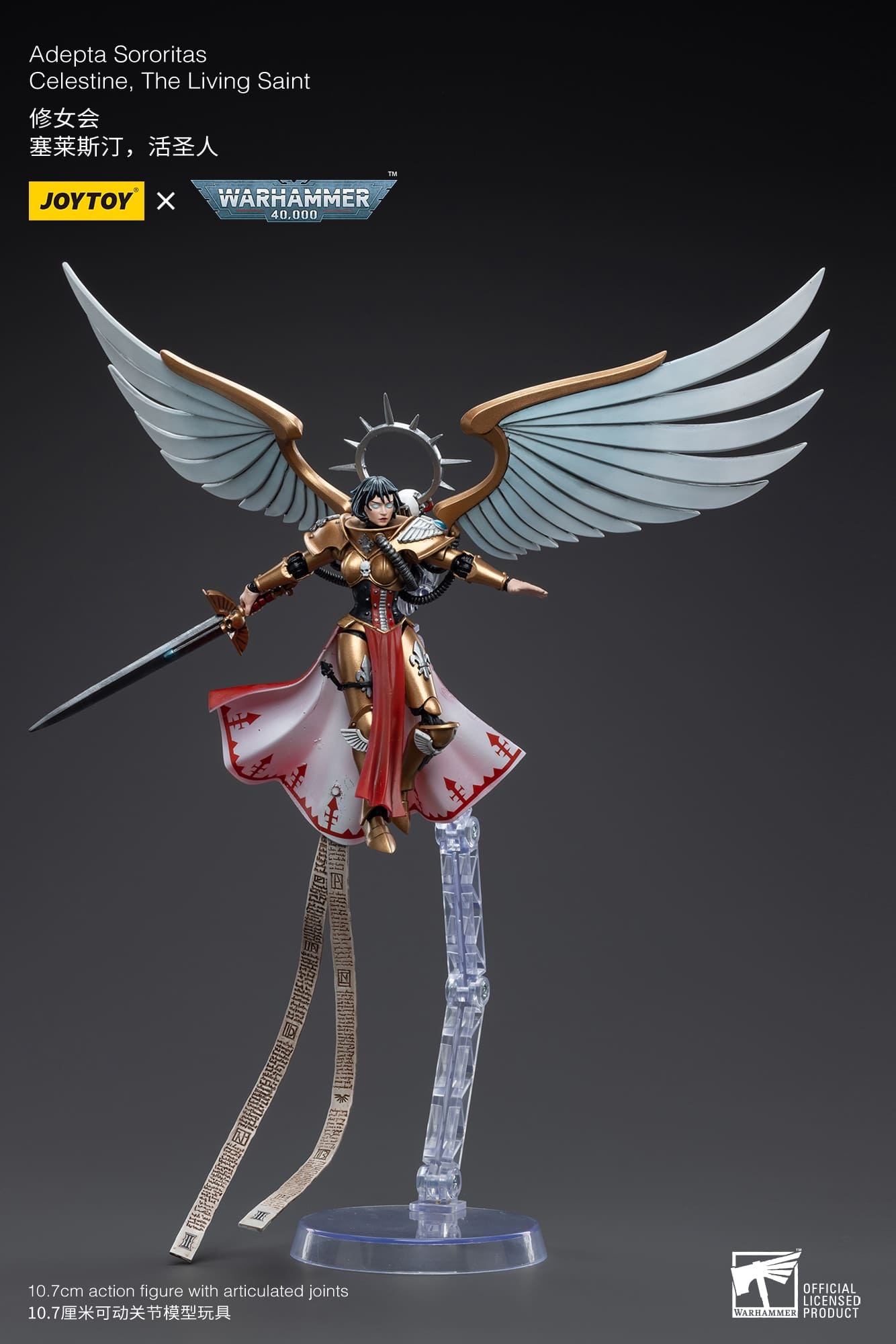 The JoyToy Action Figure Warhammer 40K Adepta Sororitas Celestine The Living Saint is a highly detailed and articulated collectible figurine from the Warhammer 40K universe. This figure depicts the iconic Celestine, a revered leader of the Adepta Sororitas, in her dynamic and powerful form as The Living Saint. Fans and collectors alike will appreciate the intricate design and craftsmanship of this stunning action figure.