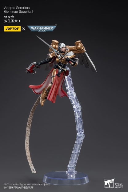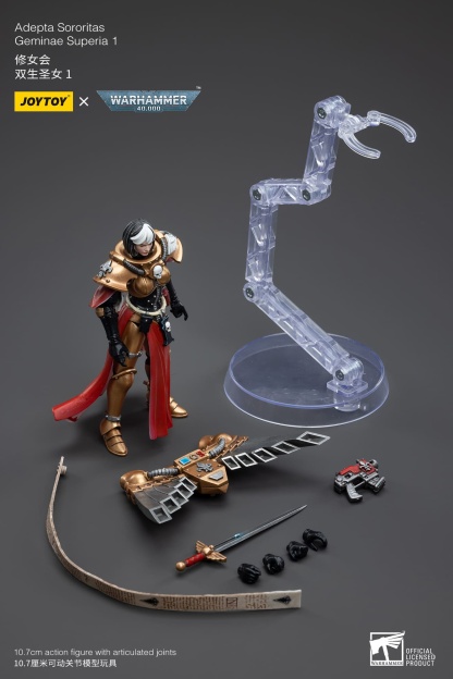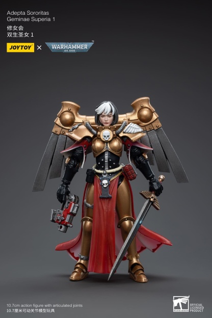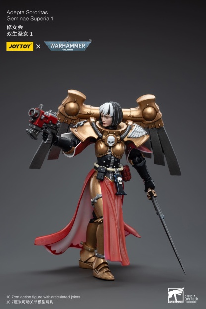 The "JoyToy Action Figure Warhammer 40K Adepta Sororitas Geminae Superia 1" is a highly detailed and articulated collectible toy from the popular Warhammer 40K universe. Fans of the series and collectors both must own this specific figurine, which portrays the Adepta Sororitas Geminae Superia 1.