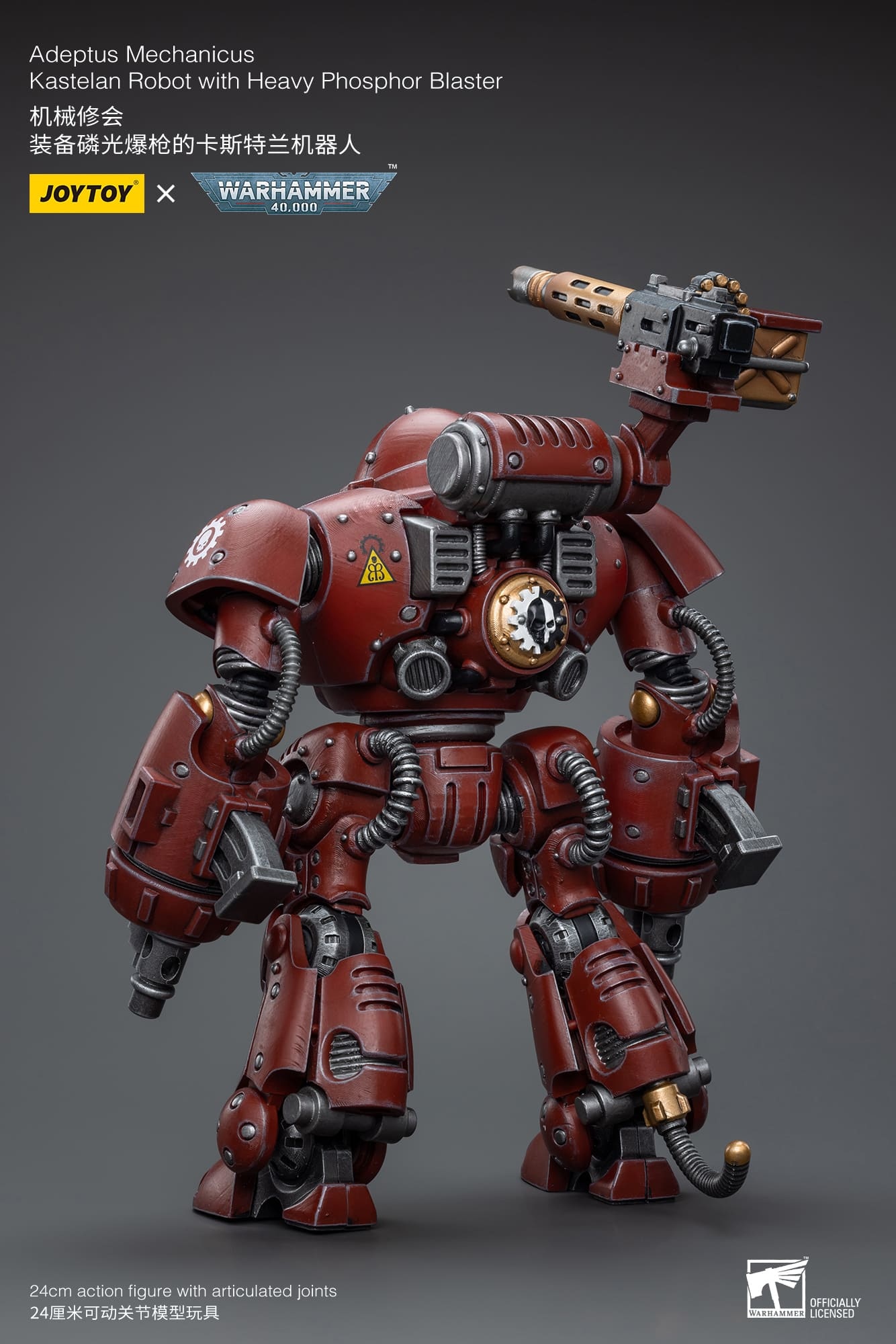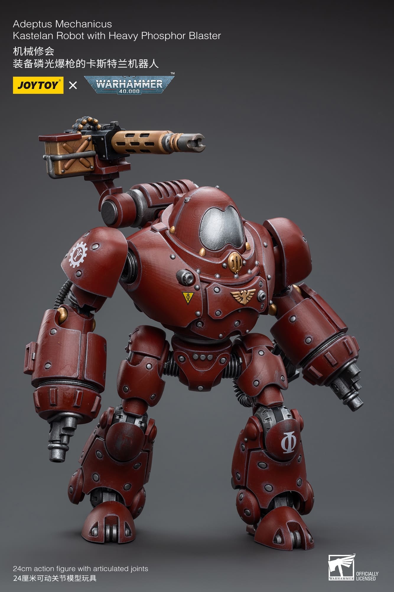 The JoyToy Action Figure Warhammer 40K Adeptus Mechanicus Kastelan Robot with Heavy Phosphor Blaster is an intricately crafted collectible figure that pays homage to the Adeptus Mechanicus faction in the Warhammer 40,000 universe. This figure showcases the iconic technology and mechanical aesthetics associated with the faction, making it a captivating addition for Warhammer 40K enthusiasts and collectors. With exceptional attention to detail, it allows fans to immerse themselves in the mysterious and tech-savvy world of the Adeptus Mechanicus.