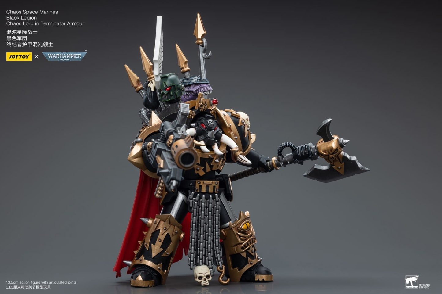 From JoyToy, we carry to you the JoyToy Action Figure Warhammer 40K Chaos Space Marines Black Legion Chaos Lord in Terminator Armour on this new assortment of 1/18 scale figures. Each determine consists of interchangeable arms and weapon tools.