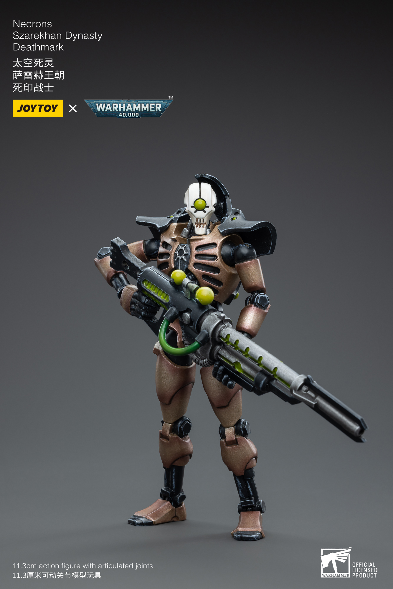 Collaborating with GameWorkshop, from JoyToy, we introduce JoyToy Action Figure Warhammer 40K Necrons Szarekhan Dynasty Deathmark figures. As the name suggests, the Szarekhan are the dynasty of Szarekh, the last Silent King. Before the Great Sleep, they were considered far and away the most prestigious and influential dynasty.