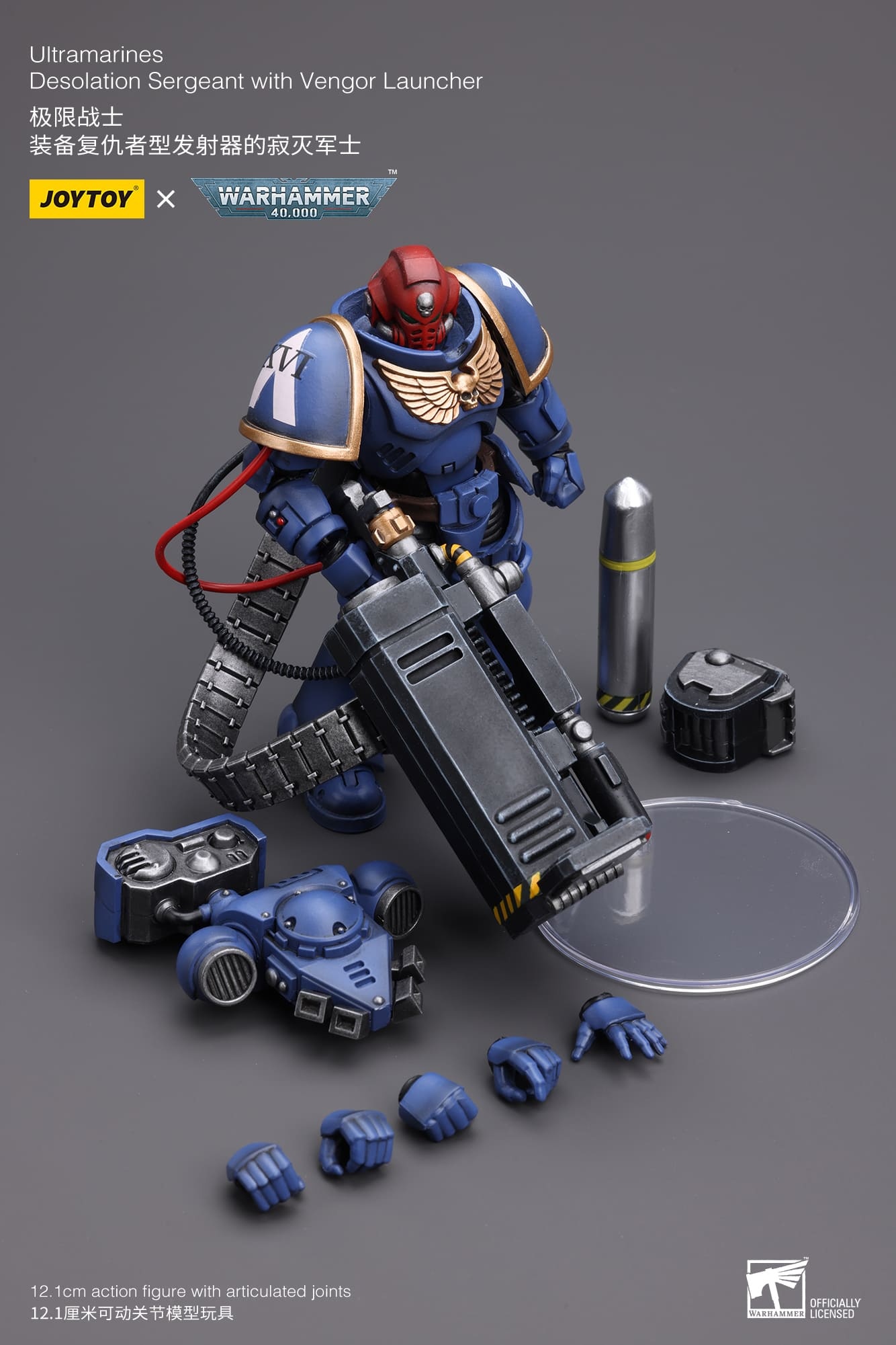 Introducing the JoyToy Action Figure Warhammer 40K Ultramarines Desolation Sergeant with Vengor Launcher! With this exquisitely crafted collectible, which features the recognizable Ultramarines Desolation Sergeant with Vengor Launcher, you can fully immerse yourself in the historic battles of the Warhammer 40K universe. This action figure, which was painstakingly created with attention to detail, captures the intense loyalty and unbreakable spirit of the Ultramarines, making it a must-have for collectors and ardent Warhammer 40K enthusiasts alike.