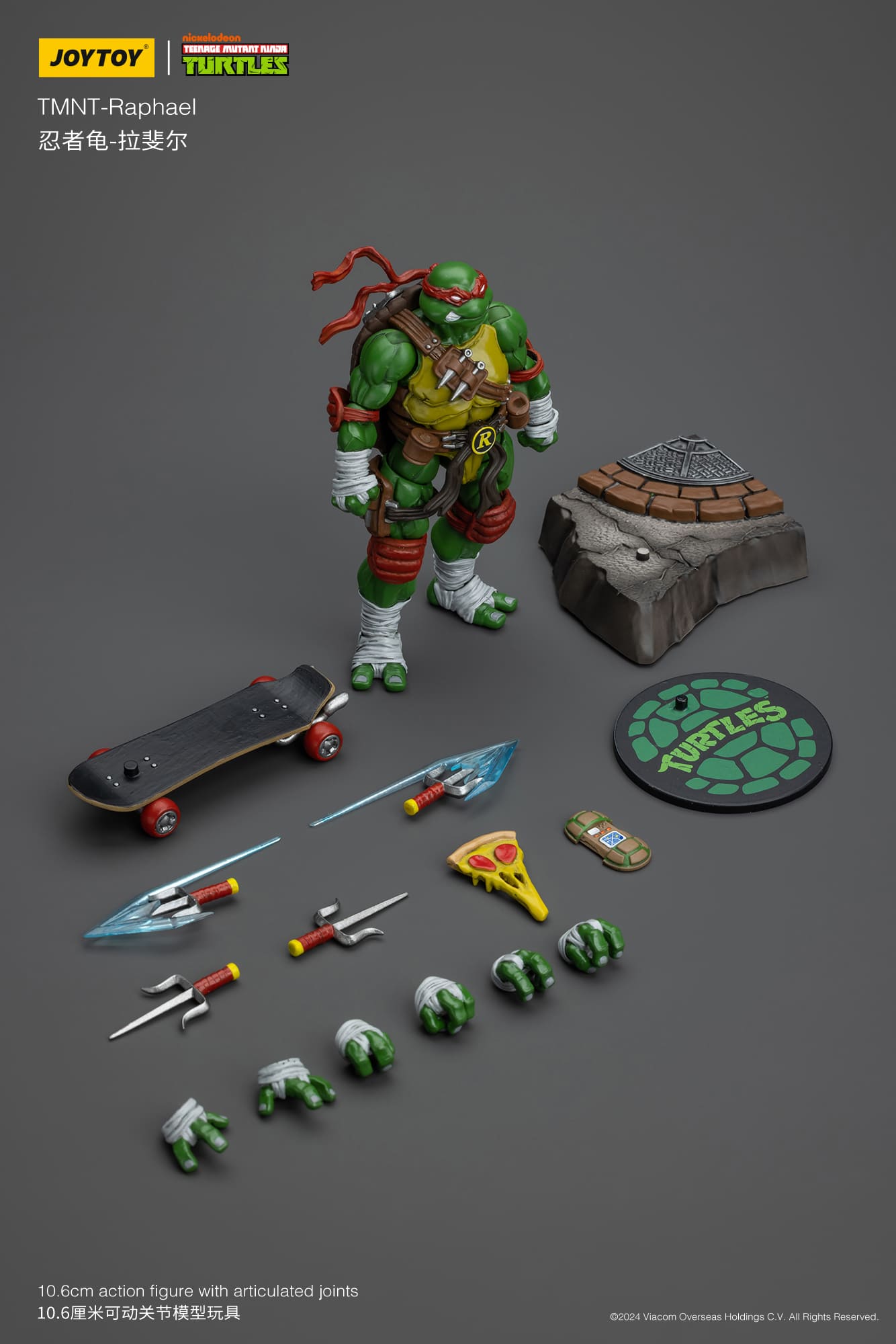 *Available exclusively for sale in Asian.Embrace the tough and rebellious spirit of Raphael with this JoyToy TMNT action figure. Armed with his signature twin sai and sporting his bold red mask, Raphael is ready for battle with his trademark attitude and strength. Featuring highly detailed craftsmanship and full articulation, this figure is a must-have for any Teenage Mutant Ninja Turtles fan or collector.