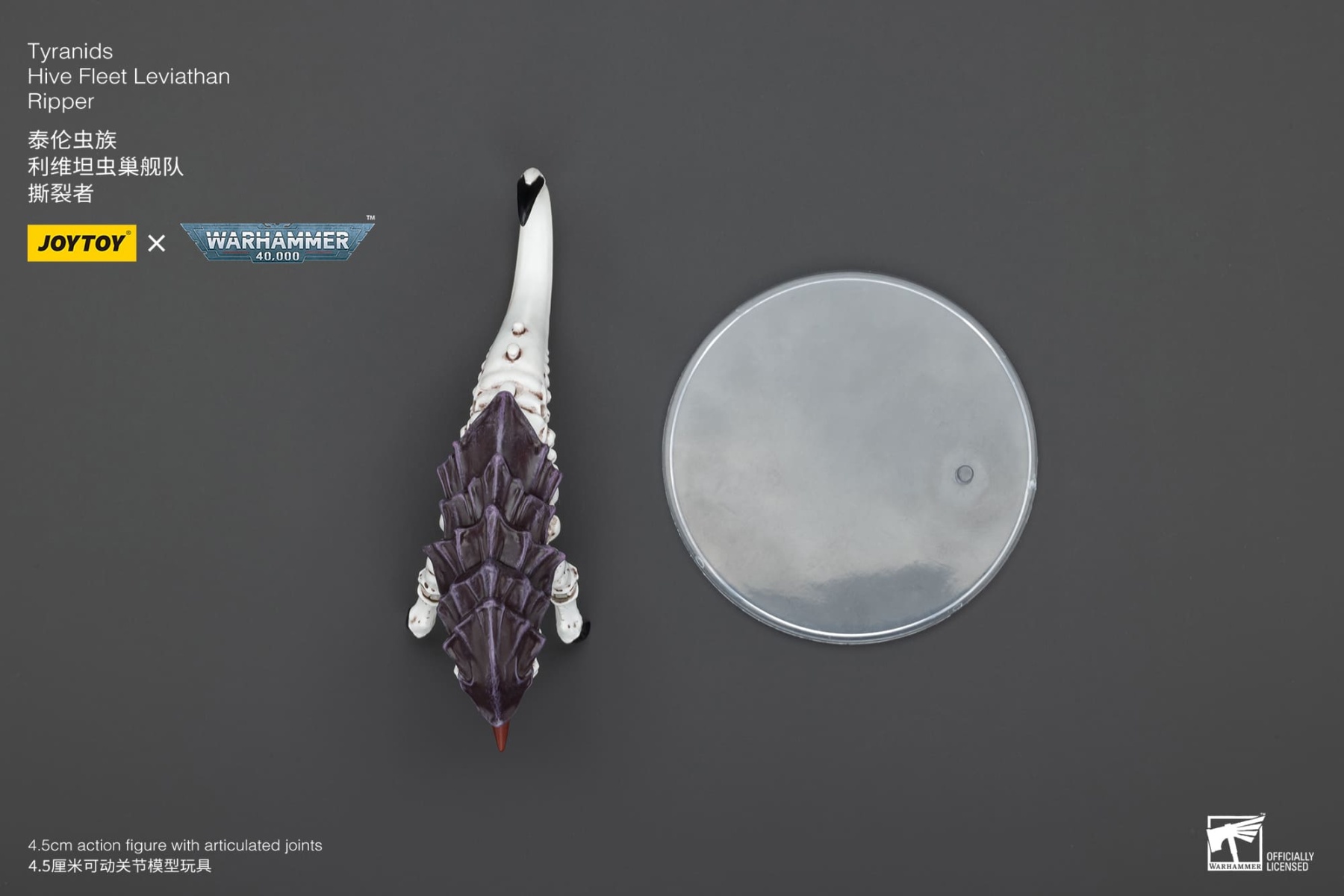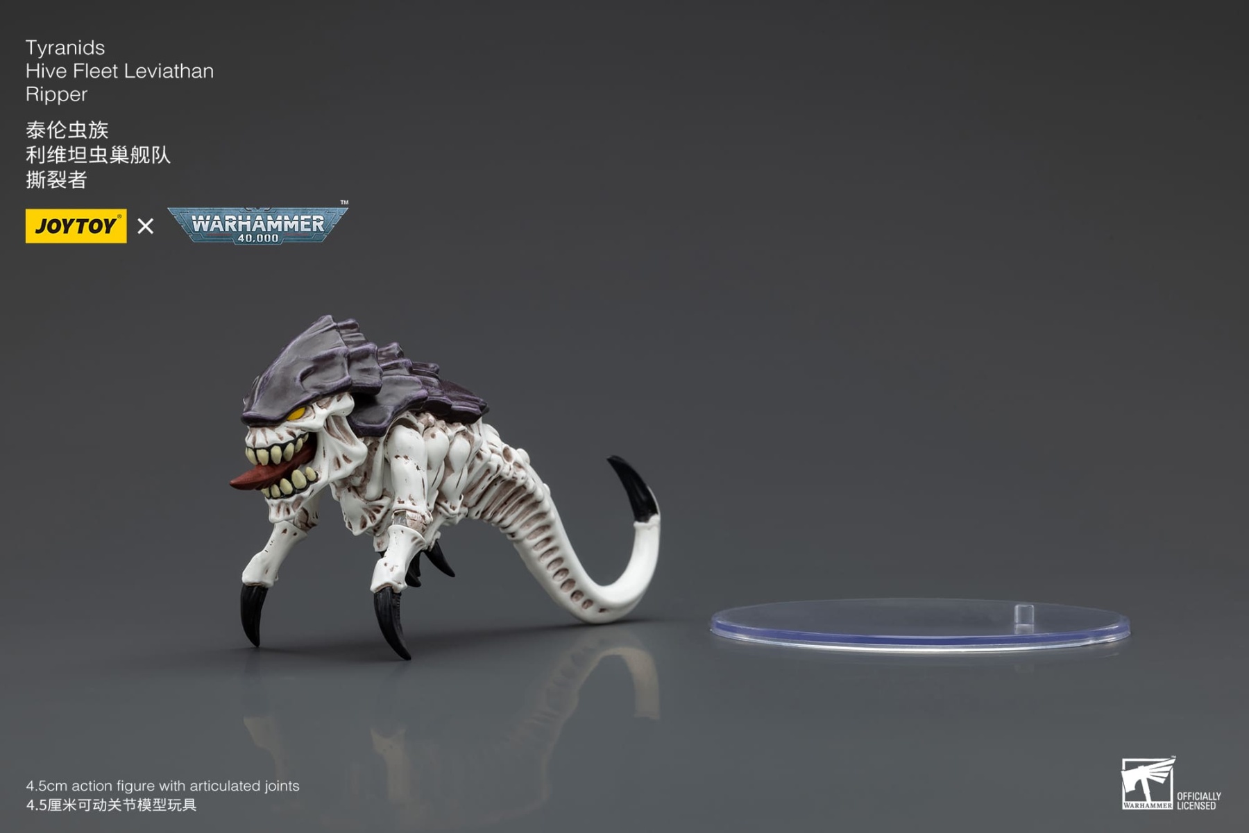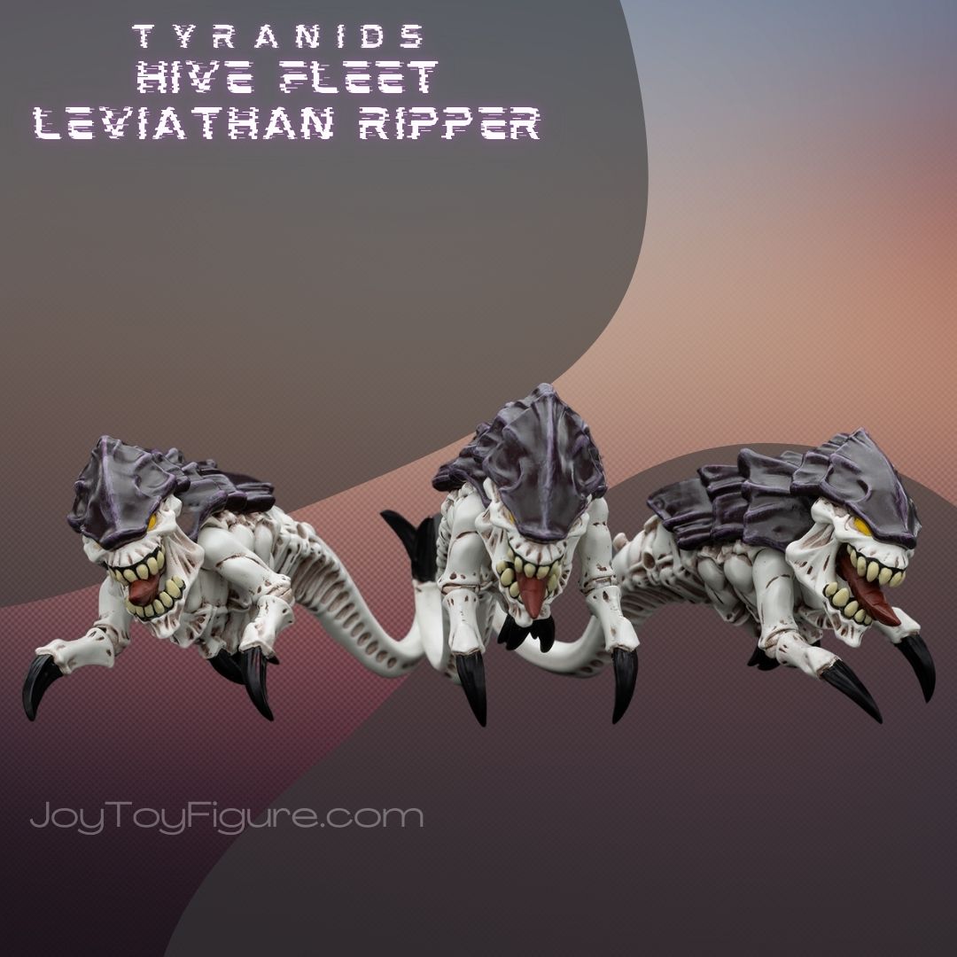 The JoyToy WH40K Tyranids Hive Fleet Leviathan Ripper is an intricately designed figure that captures the fearsome and alien nature of the Tyranid species. They are are a small, maggot-like species of Tyranids that serve as the primary means of devouring bio-mass from a planet for a Tyranid hive fleet. Indeed, Ripper swarms facilitate the speed and scale that Tyranids are infamous for in the stripping of a planet of all of its natural resources.